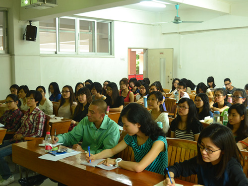 本网讯 对于学习语言的每个人来说,如何提高口语水平是百谈不厌的永恒话题。尤其在从事旅游行业时,不仅要追究口语水平的高标准,还要追求内容上的包罗万象无所不知。在10月26日,广东省导游协会副会长黄莎老师就这一话题,结合自身的经验,在二教210和法语系的老师及同学进行了深切的交流。