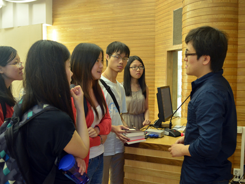 讲座结束后,范晔在西语学院老师陪同下,参观了位于图书馆四楼的梁宗岱藏书室。