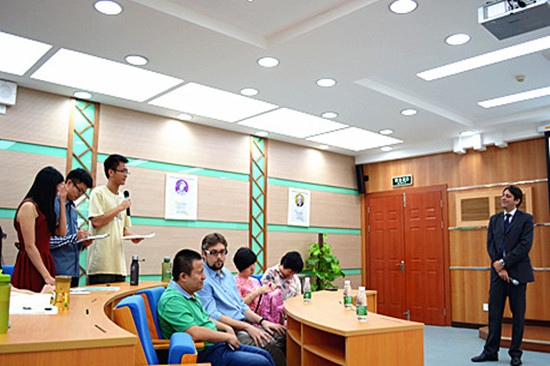 讲座结束后,翻译比赛颁奖仪式正式开始。白思诺先生主持了颁奖仪式并对获奖学生表示热烈的祝贺。荣获一等奖与二等奖的学生将分别获得到意大利著名学术中心centro studi italiani学习的全额奖学金和半额奖学金,获得三等奖的同学也获得了优厚的奖品。另外三位同学则获得了翻译比赛的优秀奖。