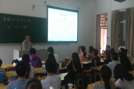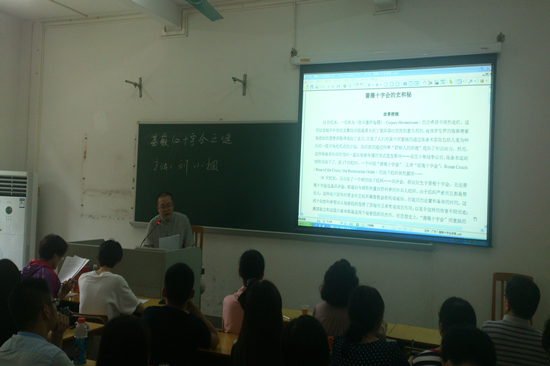 本网讯 2015年6月30日,我校西方语言文化学院有幸邀请到了中国人民大学刘晓枫教授为全体西语学院博士和硕士研究生做了一场精彩的题为“蔷薇十字会之谜”的讲座。