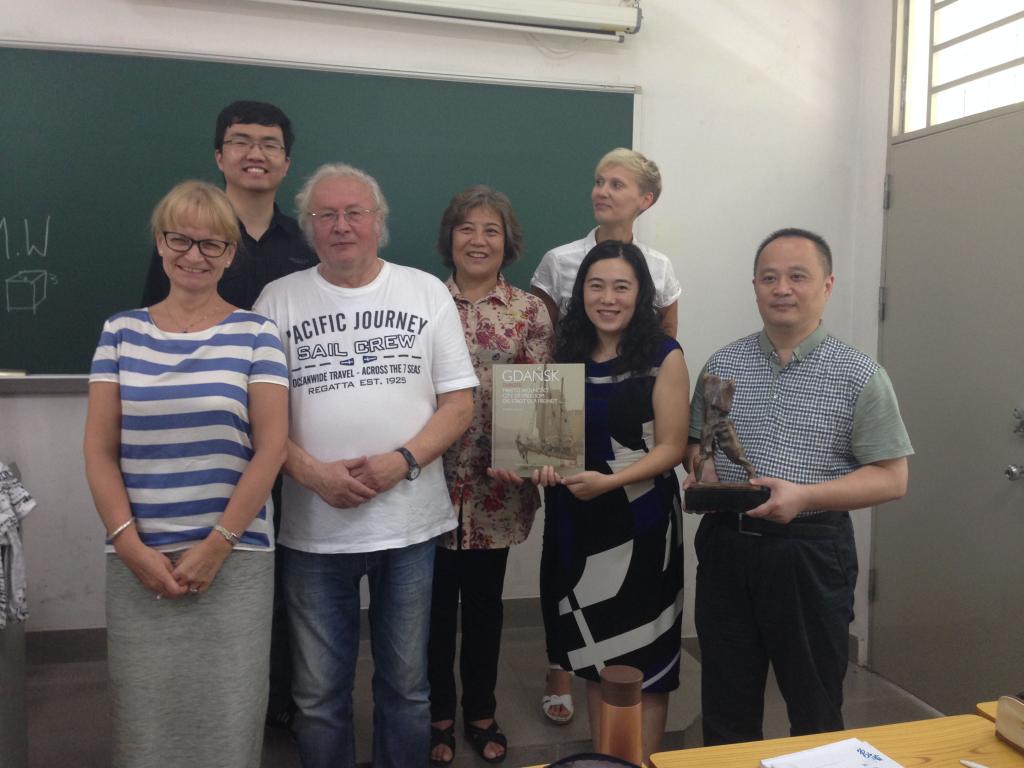 本网讯 受西语学院波兰语系的邀请,9月29日上午,波兰雕塑艺术家玛乌高莎塔•维西尼耶夫斯卡(Małgorzata Wiśniewska)和斯坦尼斯瓦夫•拉德万斯基(Stanisław Radwański) 及格但斯克大学中文系主任乌兰教授莅临我校西语学院,为波兰语系二年级的学生带来了一堂精彩生动的艺术讲座。到场的还有西语学院党委书记方华,波兰语系主任茅银辉等。