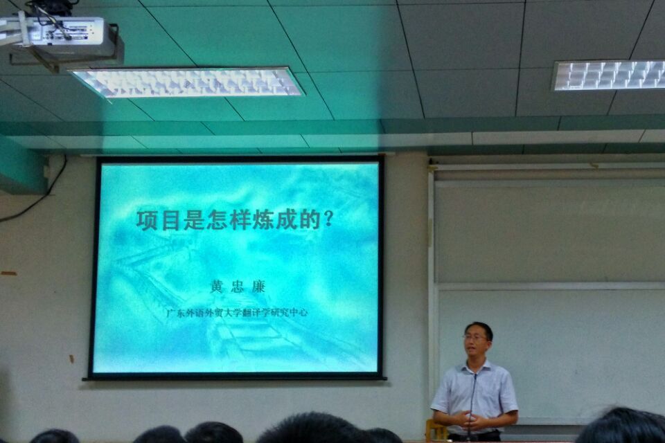 ,广东外语外贸大学翻译学研究中心黄忠廉教授于北校四教424开展了题为《项目是怎样炼成的?》的科研讲座。西语学院教职工和博士生参加了本次讲座。讲座由我院刘齐生教授主持。
