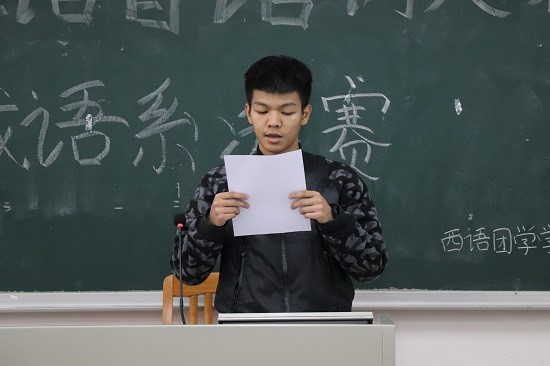 本网讯 2017年11月,随着各语系新生语音学习阶段的结束,西语学院举办了2017年新生语音语调大赛,旨在增强新生学习各自语种的兴趣、培养语感的同时,为新生提供展示学习成果的平台。本次大赛九大语系均由各个专业的任课教师及外籍教师担任评委,由各语系师兄师姐担任主持人。新生们通过诗歌朗诵、才艺表演等各具特色的方式展现了对各自专业语言的理解与运用能力。