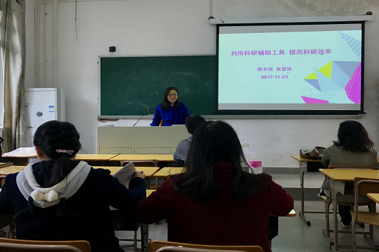 本网讯 11月23日下午,西语学院第一次青年论坛在第四教学楼209室顺利举行。 广东外语外贸大学图书馆信息服务部主任、副研究馆员张爱优为与会青年教师就“如何利用科研辅助工具提高科研效率”这一主题,作了详细的介绍。
