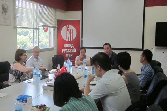 本网讯 2014年6月30日下午,法国知名学者、作家菲利普·福雷斯特(Philippe FOREST),携其新作《薛定谔之猫》来到广东外语外贸大学俄语中心,给广外的师生们带来了一场主题为“今天的文学”的精彩讲座。南京大学法语系教授、《薛定谔之猫》的译者黄荭,法国驻广州总领事馆科技教育合作专员Christophe BONTE,文化专员 Pascale VACHER,以及广州各高校的法语系教师们均参与了此次活动。