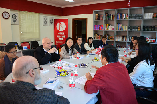 本网讯 11月26日上午,由法国驻广州领事馆文化交流合作处、广东外语外贸大学西方语言文化学院和华南师范大学共同组办的“华南法语专业博士论坛”在广外北校第四教学楼三楼俄语中心举行。法国驻广州总领事馆大学与科技专员Christophe Bonté,总领事馆语言与教育合作官员Julie Marbot,蒙特利尔魁北克大学语言学与语言教育学系教授、华南师范大学客座教授Claude Germain,法国巴黎东方语言文化学院教授Geneviève Zarate,广东外语外贸大学西方语言文化学院院长郑立华教授,法语系系主任杨晓敏副教授以及来自山东大学、厦门大学、中山大学、西安交通大学的老师和博士与广东外语外贸大学青年教师、法语专业的博士生共二十多人参加了本次论坛。
