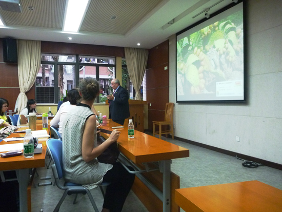 本网讯意大利语言文化周之“驻广东的意大利企业的革新:ITALIAN FASHION WAY的经验”讲座在我校举行。出席本次讲座的嘉宾有意大利时装设计师协会秘书长乔瓦尼·穆萨吉先生,意大利驻广州总领馆文化办公室负责人施丽萍女士及我院意大利语系的师生。意大利时装设计师协会秘书长乔瓦尼·穆萨吉作为本次讲座的主讲人,向大家介绍了年轻人比较关注的话题:时尚。
