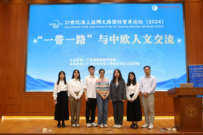 2024年11月,由广东外语外贸大学西方语言文化学院承办的21世纪海上丝绸之路国际智库论坛(2024)“一带一路”与中欧人文交流平行分论坛在广东外语外贸大学白云山校区国际报告厅成功举办。此次论坛汇聚了来自德意志联邦共和国驻穗总领馆、法国巴黎西岱大学、西班牙格拉纳达大学、中国社会科学院、上海外国语大学、兰州大学、广东外语外贸大学等国内外高校及机构的专家学者,围绕“一带一路”与中欧人文交流的主题展开深入交流与探讨。本次论坛涉及中文、法语、德语、西班牙语、葡萄牙语、波兰语等7种语言,西方语言文化学院派出近20人的师生团队,为论坛全程提供同传服务。
