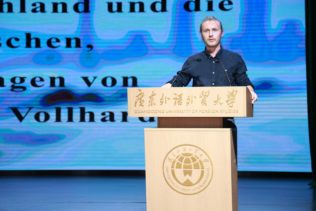 开幕式的最后环节,来自慕尼黑大学的Friedrich Vollhardt教授带来专题讲座,以“托马斯·曼与20世纪德国历史”为题,深度解读德语文学与历史的交织。而后,其子Cornelius Vollhardt现场诵读《德国与德意志人》。
