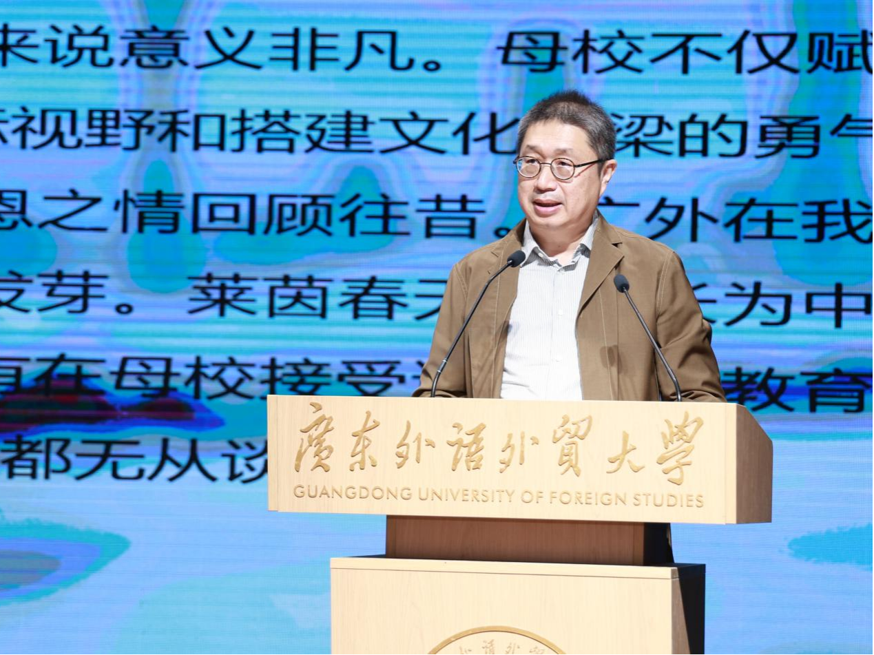 莱茵春天德语学校校长、广外1988届校友张帆在发言中分享了自己的感悟。他指出,广外不仅教授了语言技能,更赋予了学生开放的视野与搭建文化桥梁的勇气。他寄语各位学弟学妹,要珍惜校园时光,保持好奇、无畏探索,为世界发出自己的跨文化声音。