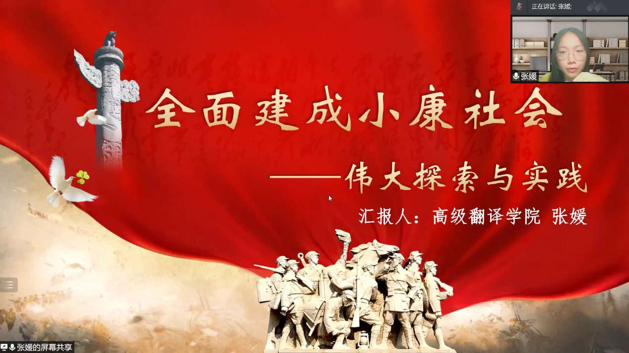 2021年11月4日下午16:00,西语学院邀请“百年党史大学生宣讲团成员、高级翻译学院张媛为学院党员学生开展题为“全面建成小康社会——伟大探索与实践”线上专题党课,共计158名党员参与。