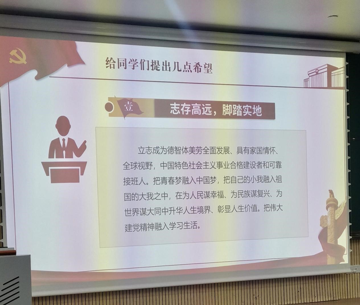 最后敖湘晖书记给同学们提出了几点希望:一、要志存高远、脚踏实地;二、要严谨治学、力求创新;三、要关心集体、勇于担当;四、要公道正派、遵章守纪。