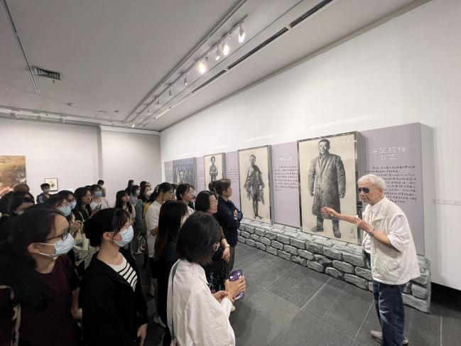 恽老的作品是新中国成立以来各个历史时期的重要见证,他敏锐地捕捉到时代变迁的信息,又坚持不懈地推进自己最为倾注心力的历史画和肖像画创作。在恽老的带领下,师生党员参观了“主体性历史画创作”、“肖像艺术”、“速写与写生”三大类作品,感悟一幅幅作品背后的时代精神,感受人民文艺的精神力量。
