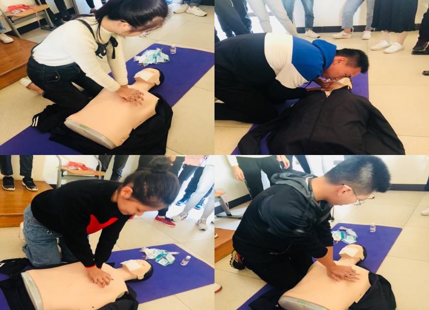 第三环节,何丽虹医生现场演示了紧急情况下进行人工呼吸及心肺复苏的正确方法,并指出来人工呼吸过程中的注意事项。男女各2名宿舍长进行了现场练习,在何医生的指导下深入体验了人工呼吸的操作过程。