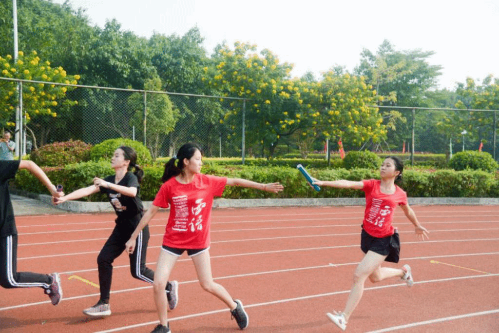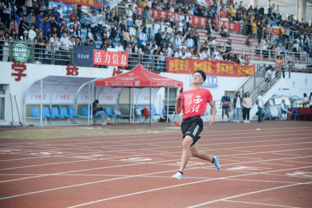 紧接着,女子4x100接力决赛与男子4x100接力决赛开始。陆盈斐、罗洋、邱瑜桑和周庚妮代表我院参加女子4x100接力决赛,黄灏天、谭耀辉、黄佳信和陈富代表我院参加男子4x100决赛。枪声一响,田径场上你追我赶,观众席上鼓乐齐鸣,大家都为这精彩绝伦的比赛欢呼呐喊。西语健儿们也不甘落后,用尽全力,在接住木棒的那一刻,像一匹匹奔腾的马,向下一个目标极速前进。一根小小的木棒,连接的是团结和友爱,传递的是勇气和力量,演绎的是奋斗和拼搏。女子组获得了单组第一的佳绩,场上再次掌声雷动。
