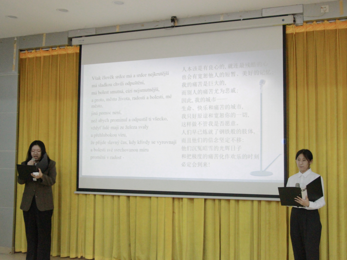 本网讯 4月27日下午,西方语言文化学院2023年“博尔赫斯的玫瑰”欧罗巴多语种朗诵大赛在白云山校区水上报告厅成功举办,十五组参赛选手用十种语言为现场观众带来了一场视听盛宴。