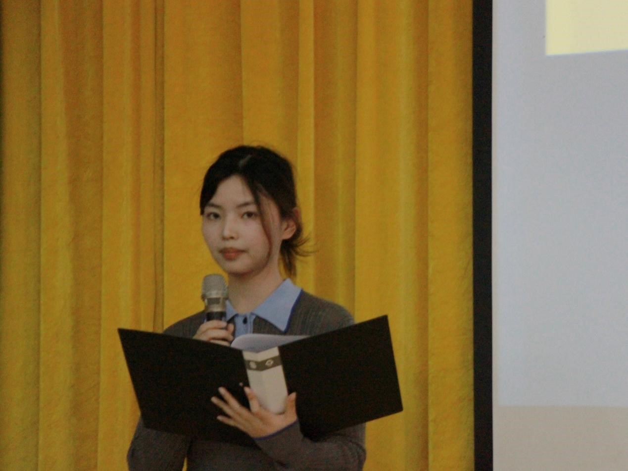 下午两点半,比赛准时开始。首先登场的选手是俄语2101班的陈姿颖。她朗诵的作品是《致大海》。《致大海》是俄国浪漫主义诗人普希金的一首政治抒情诗,全诗通过海之恋,海之思,海之念的“三步曲”,表达了诗人反抗暴政,反对独裁,追求光明,讴歌自由的思想感情。