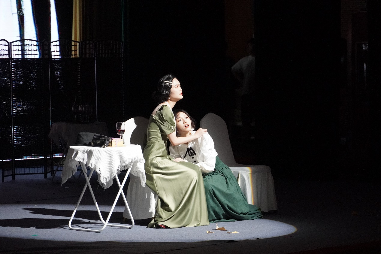 俄语剧组带来了《樱桃园》,该剧围绕着“樱桃园的易主与消失”这个核心,讲述了加耶夫爱娃兄妹被迫出卖祖传的樱桃园的故事,写出了贵族退出历史舞台的必然性和新兴资产阶级的兴起,以细腻的笔触集中地描写了19世纪末20世纪初俄国资本主义迅速发展,贵族庄园彻底崩溃的情景。