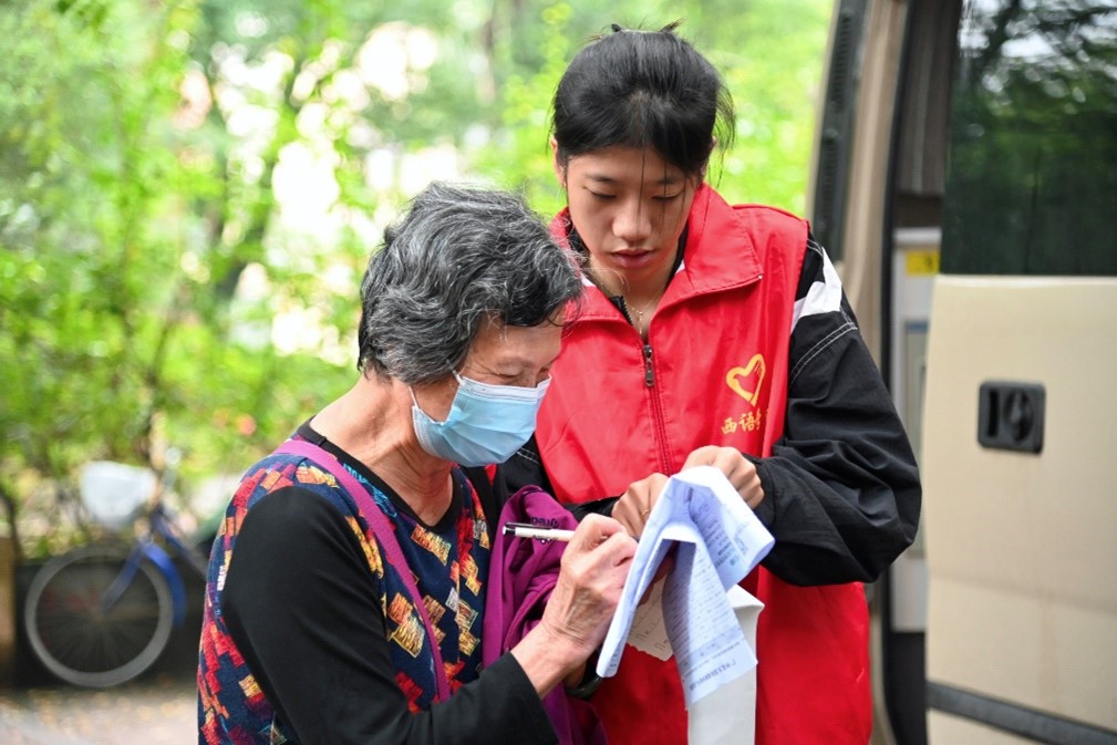 井然有序的体检现场也离不开参检人员们的积极配合,他们之间相互谅解,相互扶持,互唠家常,门诊部内充满了温暖。对于参检人员而言,学校、医护人员、志愿者们共同的关怀与帮助,便是他们生活中的安全感。参检人员们高度赞扬了西语学子的志愿精神并向他们表达了真挚的谢意。