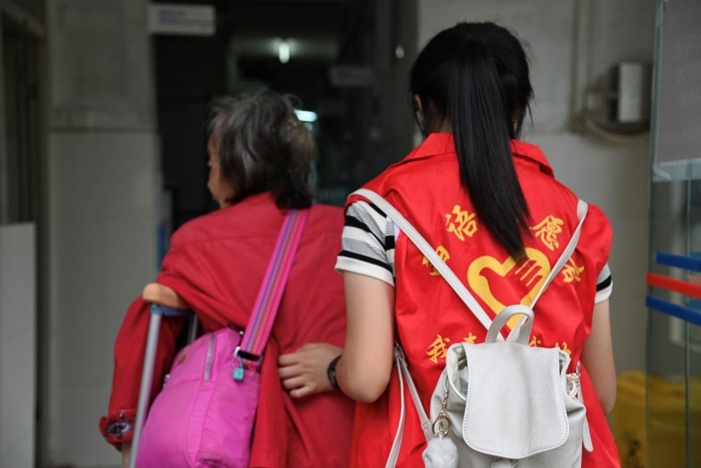 搀扶老教师的志愿者
