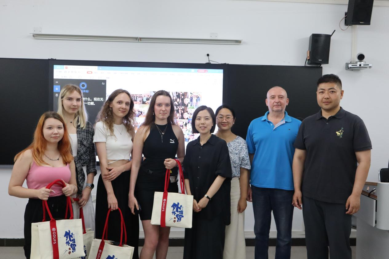 本网讯 2025年5月8日晚,为更好落实我校国际交流合作“PRIME计划”,并进一步推进国际化办学体系建设,西语学院俄语系联合广外全球学生交流大使团在白云山校区一教南楼307室举办了与莫斯科国立语言大学的校际学生交流见面会。俄语系主任陈欢老师、姜超老师、梁玮琦老师,以及外教沙拉夫特季诺夫·扎力到场交流,俄语专业40余名学生踊跃参与,现场气氛热烈,交流互动频繁。