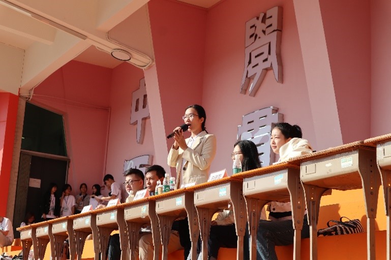 开幕式上运动员代表、裁判员代表庄严宣誓,冯迪南老师为本次运动会致辞,她鼓励同学们以饱满的热情投身到比赛中来,共同营造热烈和谐的比赛氛围,将运动会上展现出的拼搏精神和团结协作意识带到日常学习生活中,为梦想不懈奋斗。最后,魏少娟老师宣布本次院运会正式开幕。
