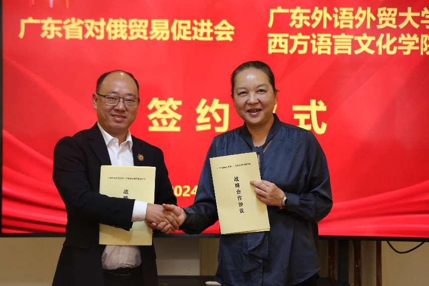 张光健与杨晓敏分别代表省对俄贸易促进会和西语学院,签署了战略合作协议,双方今后拟在对俄贸易、俄语人才培养、就业创业、产教融合等领域开展广泛、深入的合作。