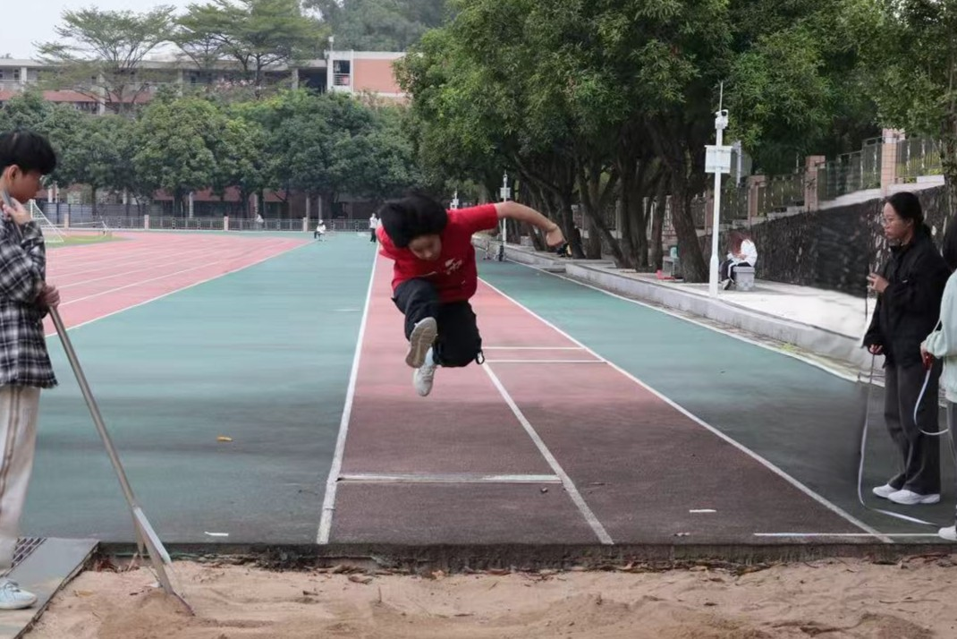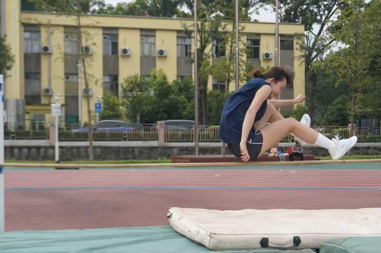 女子跳远是爆发力与技巧的瞬间结合。不仅要比拼助跑速度,更需精准把控踏跳时机。沙坑前的纵身一跃,定格着突破自我的瞬间。祝贺葡语2401宋亮语同学、德语2202钟茵琦同学和西双2501温嘉怡同学分别获女子跳远冠、亚、季军!