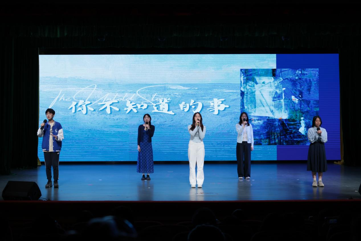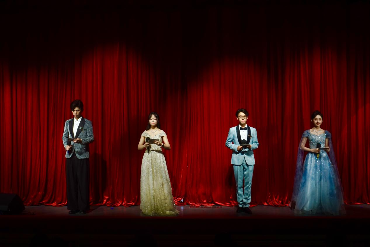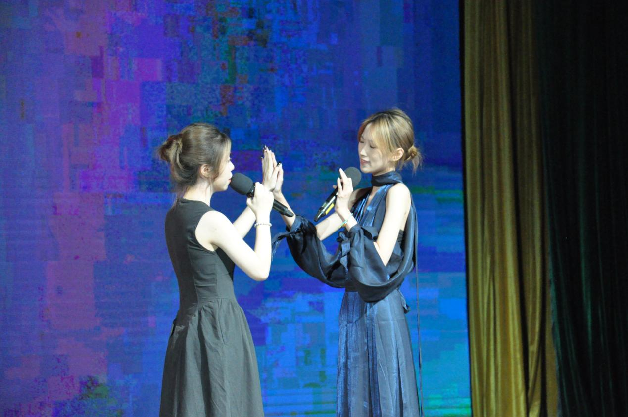 第三篇章“启新程”在霏阳吉他社极具动感的《Beneath the Mark》和《Fear for Nobody》中开始,富有动感的音乐再一次点燃了现场观众的热情。德语国贸2501班的同学们一曲《紫荆花盛开》,通过紫荆花的盛放,展现了团结与共生之美。校话剧队的《宝玉重返大观园》让人目不暇接,台上的演员们表情生动,动作流畅,带来了一场视觉盛宴。西语国贸2501班同学们《一笑倾城》,在他们年轻的面庞上洋溢着富有感染力的笑容,清脆的歌声中承载着勇气与真诚。