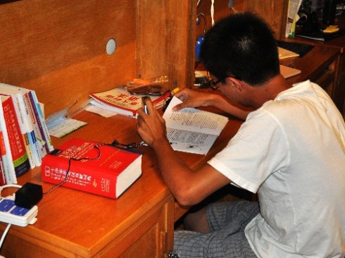 大一新生正专心学习