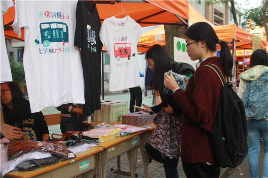本网讯2015年12月10日下午两点整,第十二届“易”路成长交换空间大型活动在相思河畔准时开始。西方语言文化学院共有五个摊位参与了本次活动,更有西语学子进入了旧物改造的决赛,参与现场限时旧物改造。