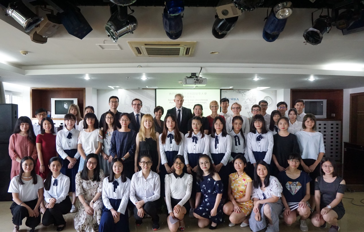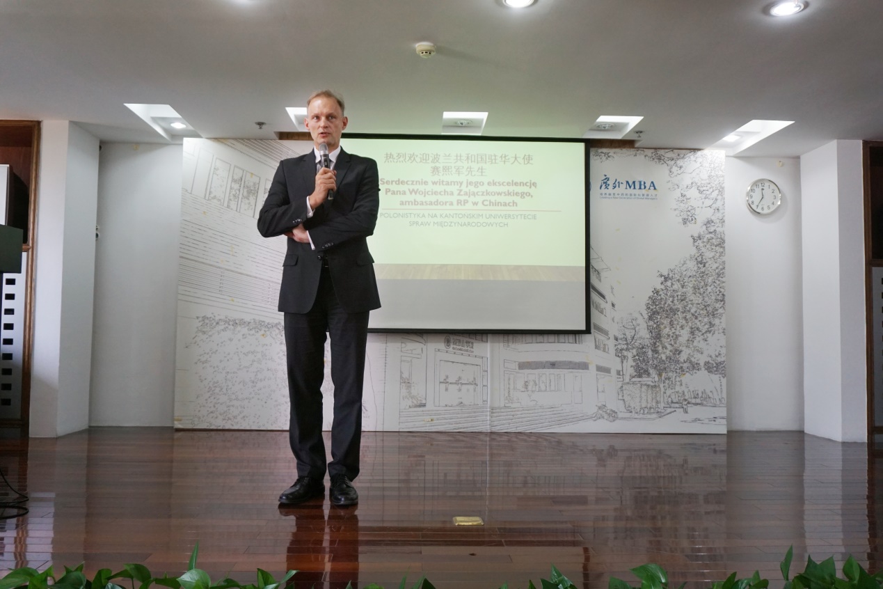 下午两点,赛熙军大使一行在国交处副处长易宗勇的陪同下出席了广东外语外贸大学波兰语系师生精心准备的大使见面会。