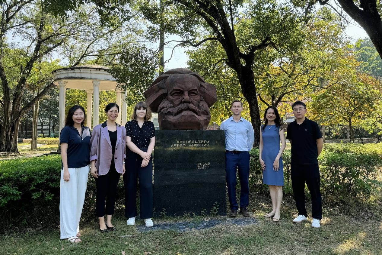 本网讯 2024年11月12日,德国学术交流中心(DAAD)中国首席代表Ole Engelhardt(欧阳乐)先生与广州代表处代表李文爱女士莅临广东外语外贸大学德语系参观交流。此次访问旨在联络感情,强化合作,探索双方人才培养与学术交流的更多可能性。学院卢铭君副院长、德语系主任吴晓钢老师、张思源老师、DAAD驻系语言专家Katharina Eberle老师接待了来访客人。