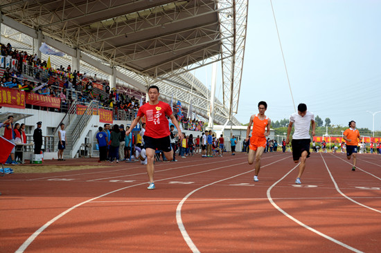 下午4时,激动人心的百米决赛开始,经历上午紧张激烈的预赛后,来自俄语1301班的曾梓墩以小组第一的成绩杀出重围进入了决赛。在西语学院的加油呐喊声中,曾梓墩仅仅在十几秒的时间内不断加速,率先冲过终点,夺得了男子100米的冠军,为西语学院再添一金。