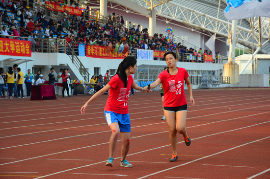 下午四点半,激动人心的女子4×400接力比赛正式开始。随着一声响亮的枪响,西语学院的运动健儿急速向前奔去,娴熟而默契地交接接力棒。最终,她们齐心协力地杀出重围,获得总排名第六。