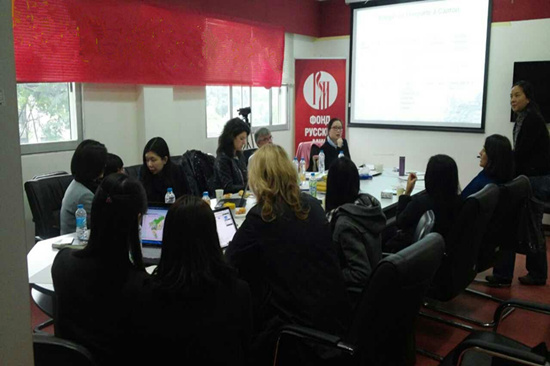 来访期间,西语学院跨文化研究中心还在俄语中心举办了与法国达能公司合作研发项目的中期汇报讨论会。出席此次会议的有项目技术指导戴泽教授,达能中国相关部门负责人,跨文化研究中心的老师和学生。法语翻译硕士生和法语语言文学硕士生为此次研讨会提供了翻译服务。