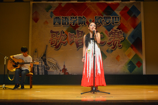 本网讯 4月21号晚,西语学院第九届欧罗巴文化节之“浮浪诗人的赞歌”小语种歌唱大赛在六教报告厅举行。担任本次歌唱大赛的评委的有学生工作处李丽人老师,校艺术团指导老师涂颖老师和学生就业指导中心的许俊浩老师,他们都具有多年的歌唱和舞台表演经验。本次大赛还邀请了来自其他兄弟学院的九位大众评委。