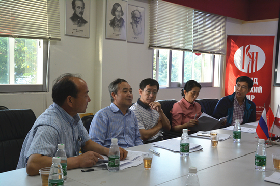 本网讯 5月12日下午3点,广东外语外贸大学校级文科重点基地——中欧跨文化研究中心成立暨学术研讨会在第四教学楼俄语中心举行。参与本次会议的有西方语言文化学院院长杨可教授,西语学院党委书记方华,副院长刘齐生教授,郑立华教授,余杨教授,杨晓敏副教授,张弛教授以及中山大学外语学院王蓓蓓教授和蒲志鸿教授、广东外语外贸大学南国商学院徐帆教授、基地成员萧净宇教授。外国文学文化研究中心张进教授,非通用语研究中心全永根教授,科研处陈彦辉处长也出席了本次会议。