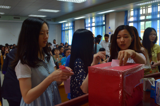 接下来,学院全体党员通过各项选举程序对党委会候选人进行选举。经选举,西语学院新一届党委会成员为:方华、杨可、陈华荣、刘齐生、杨晓敏、郑立华、叶剑如。