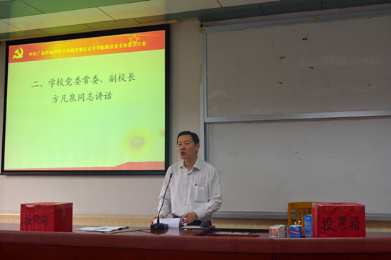 大会由西语学院副书记陈华荣主持。首先,方凡泉副校长发表讲话。他对西语学院的各项工作给予高度评价,肯定了西语学院在上一届党委会的带领下取得的一系列成绩,并对本次大会寄予厚望,希望新一届党委会开拓创新,为学校和学院工作建设作出更大贡献。