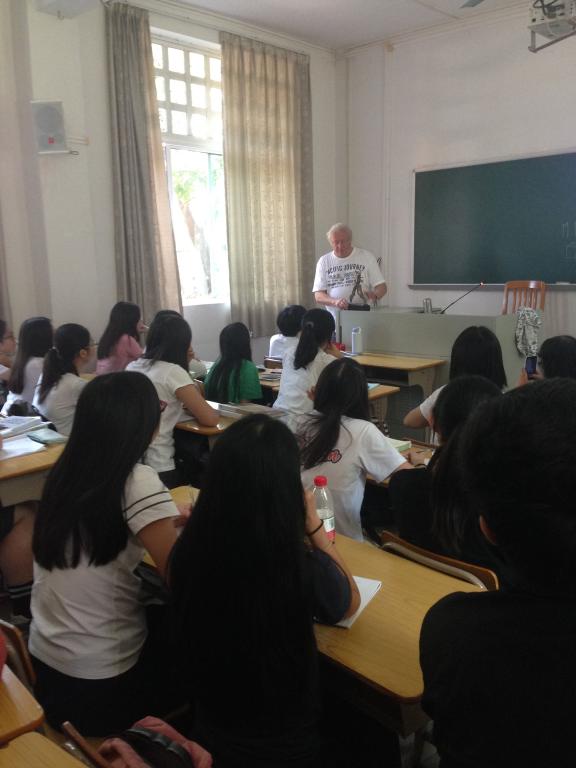 接着,拉德万斯基教授向大家介绍了波兰的艺术流派,雕塑的风格发展和现状,随后还介绍了自己的一个雕塑作品,这个由铜制成的人体雕塑兼具力量与美感,被命名为“行者”。该作品被作为今年“诗歌与人”国际诗歌奖的奖杯,并被放大作为第一批进驻位于湛江雷州的国际雕塑园的雕塑作品。他当场将自己从波兰带来的这个雕塑作品赠与西语学院波兰语系。