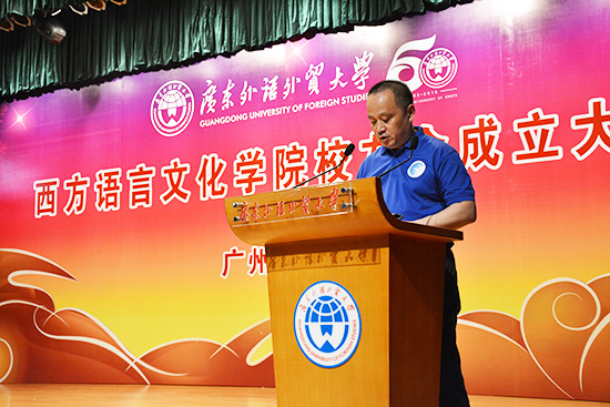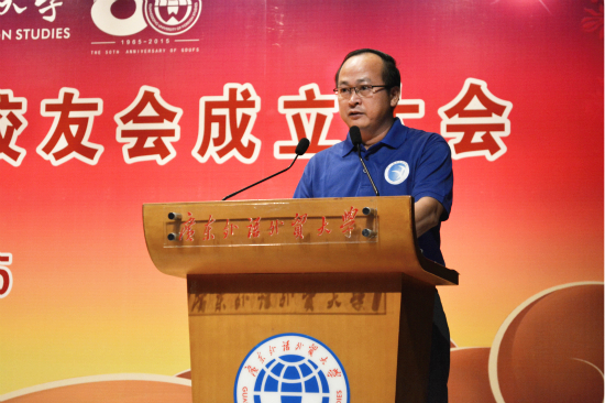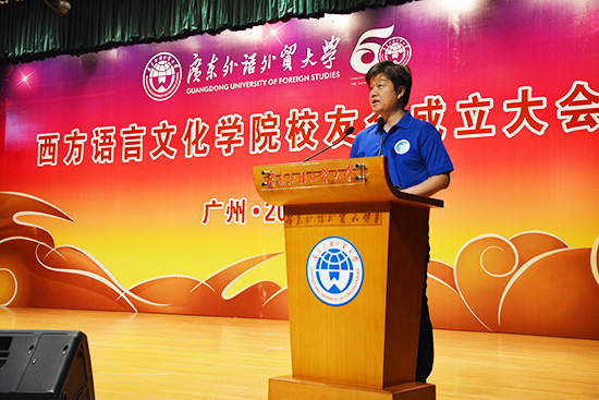 方凡泉副校长上台致辞:西语学院经过50年的成长进步,取得了骄人的成就,西语各语种的特色和地位都不断地凸显,实力不断地壮大。50年的砥砺前行,让西语学院在逐梦的路上越走越远,培养了一大批具有国际视野的外语人才。他还指出,成立校友会有利于弘扬校友精神,提升校友的归属感,增进校友间的情感交流。