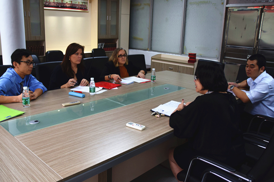 会议伊始,杨可院长对两位客人的到来表示了热烈的欢迎。紧接着,双方就“2+2”项目的开展进行了商讨。杨可院长表示,“国际化”是学校,也是西语学院一直以来追求的目标,因此学院对这次的“2+2”项目非常重视,也给予了很大的支持。Carme副校长也说,她非常期待西语系的学生去到圣地亚哥·德孔波斯特拉大学学习,这不仅有利于提高学生的语言水平,而且也可以感受到不同的风土人情。对此,杨可院长表示了赞同,她说,学院会积极推进“2+2”项目的实施,并会加强宣传。虽然这个项目依然存在一些细节问题需要继续研究和商榷,但是双方均表示会尽快落实,尽快达成共识。