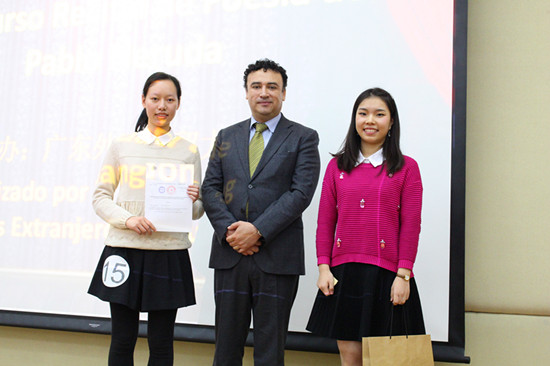 本讯网智利驻广州总领事馆与广东外语外贸大学联合举办的“广东省高校西班牙语专业聂鲁达诗歌朗诵比赛”于12月9日下午在广东外语外贸大学北校区图书馆负一层举办。