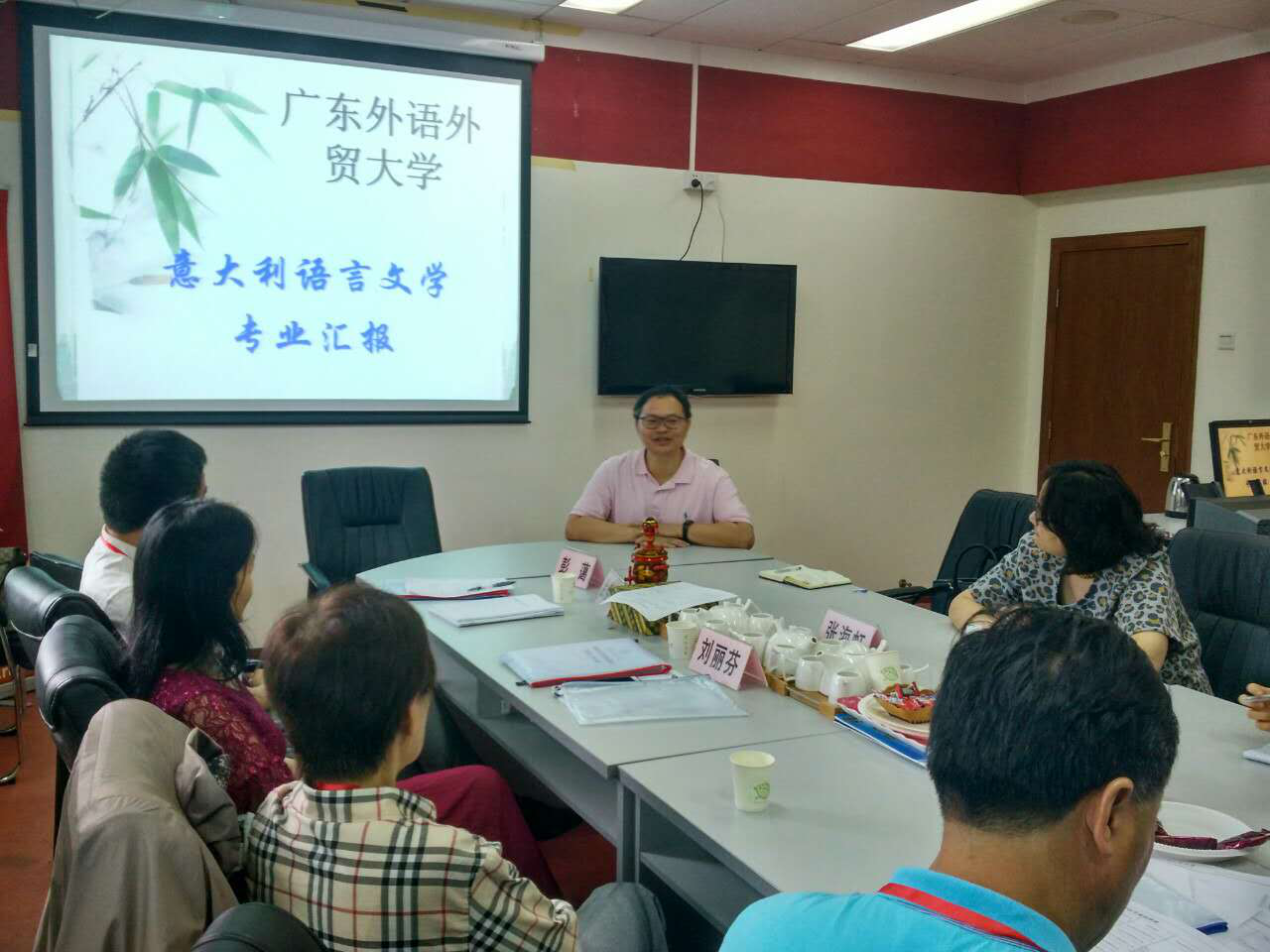 本网讯2016年5月17日,广东外语外贸大学本科专业校内评估在北校区拉开帷幕,意大利语专业在评估的第二天(5月18日)迎来了评估专家小组。专家小组由五位专家组成,组长兼学科专家之一是中国意大利语教学研究会会长、对外经济贸易大学意大利语教授张密教授,另一位学科专家是黑龙江大学教授刘丽芬,行业专家是意大利B Z MODA SRI公司经理李治国,教务管理专家是华南师范大学教务处主任罗一帆老师,校友专家是广州汽车集团股份有限公司汽车工程研究院工会办公室副主任金佳平。全程陪同评估工作的还有校教务处彭蔼老师、意大利语系主张海虹老师和意大利语系教师李晶老师。