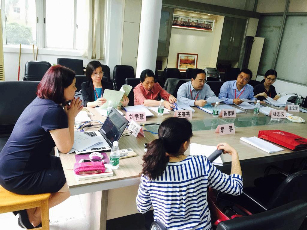 本网讯 2016年5月17日,广东外语外贸大学本科专业校内评估在北校区拉开帷幕,作为西方语言文化学院首批参加迎评的三个专业之一,德语专业迎来了评估专家小组。专家小组由五位专家组成,组长兼学科专家之一是北京第二外国语学院西欧语学院院长刘学慧教授,另一位学科专家是中山大学外国语学院德语系王蓓蓓教授。广东省人民政府外事办公室新闻处陈家胜处长担任行业专家,教务管理专家是广东工业大学轻工化工学院副院长杜志云教授,德意志学术交流中心广州信息中心的主管李文爱女士作为校友代表参加了本次评估。全程陪同评估工作的还有校教务处胡蓉老师、意大利语系主滕奕丹老师和助理林璐老师。