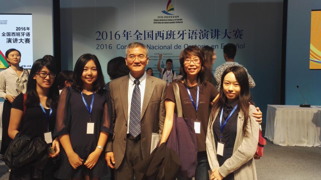 本网讯经过四个月的准备和选拔,由文化部、北京外国语大学、外语教育与研究出版社共同举办的2016年全国西班牙语演讲大赛于9月24日在北京民族剧场成功举办。来自全国各地共52所大学代表队及30余名非专业的西班牙语爱好者参加了本届演讲大赛,最终包括我校在内共有18支院校代表队及一支由西语爱好者组成的队伍晋级决赛。我院西班牙语系的学生张诗怡、胡诗敏及余佩瑶同学在林婧老师的带领下,获得了全国二等奖的佳绩。