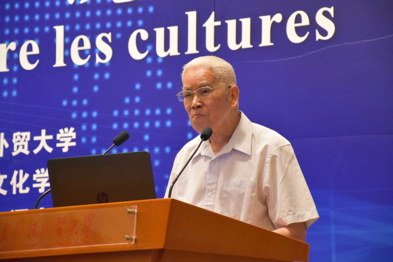 随后,广东外语外贸大学原校长、梁宗岱先生的学生黄建华先生,发表了“梁宗岱与文化交流”的主题演讲,回顾了梁宗岱先生在文化交流上所做的贡献,并描绘了他为梁先生与法国诗人瓦莱里后人之间重建联系的亲身经历。当天,来自中外的各位专家学者进行了主旨发言,从不同角度出发探讨了流动与跨文化交际。