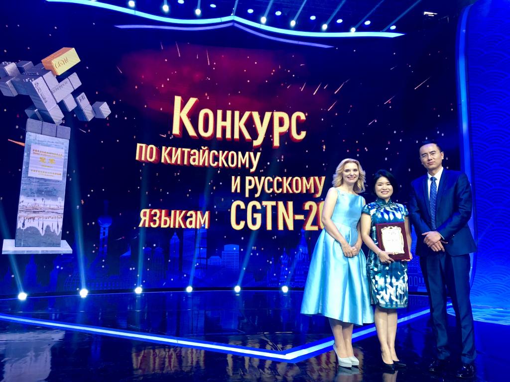 本网讯 9月3日,中央广播电视总台央视俄语频道特别节目《2018CGTN中俄语言大赛》俄语总决赛在北京成功举行。我校西方语言文化学院俄语系博士研究生陈群力压群芳获得大赛冠军。