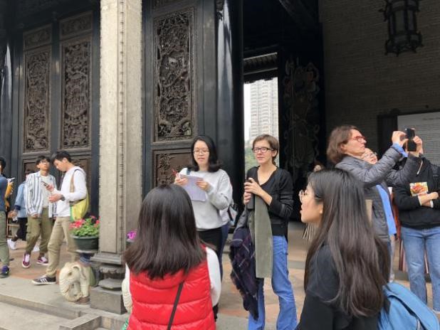 午后,口译小分队移步至陈氏书院(ŚwiątyniaKlanu Chen)。陈氏书院是广东规模最大、保存较为完好的同类建筑群。它集广东民间建筑装饰艺术之大成,是一座民间装饰艺术的璀璨殿堂。波兰语系师生都对这座“岭南建筑艺术明珠”叹为观止。